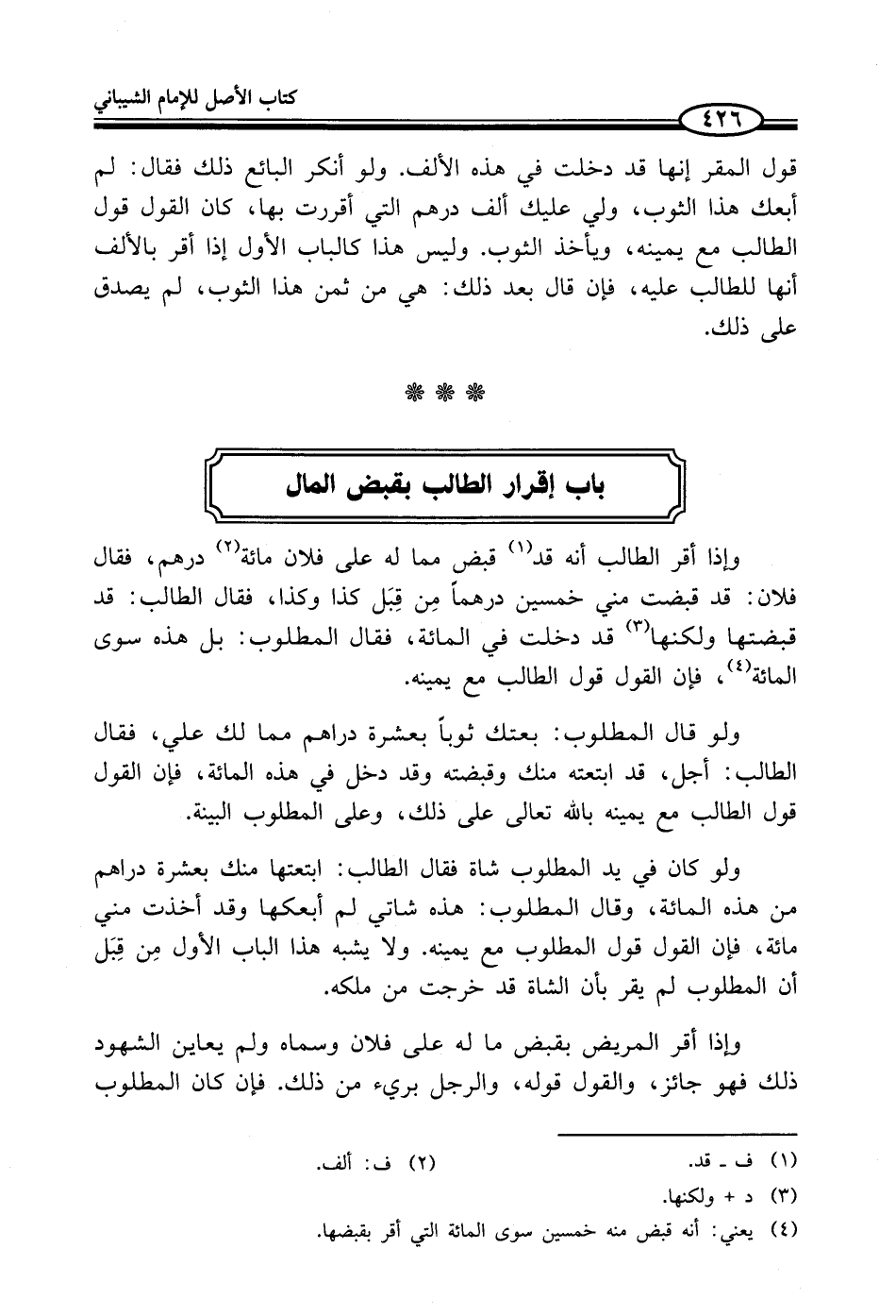 باب إقرار الطالب بقبض المال