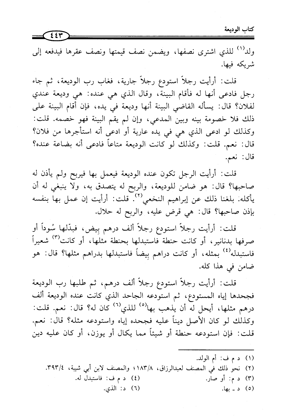 قلت: أرأيت رجلاً استودع رجلاً ألف درهم، ثم طلبها رب الوديعة فجحدها إياه المستودع، ثم استودعه الجاحد الذي كانت عنده الوديعة ألف درهم مثلها، أيحل له أن يذهب بها (¬5) للذي (¬6) كان له؟ قال: نعم. قلت: وكذلك لو كان الأصل ديناً عليه فجحده إياه واستودعه مثله؟ قال: نعم. قلت: فإن استودعه حنطة أو شيئاً مما يكال أو يوزن، أو كان عليه دين