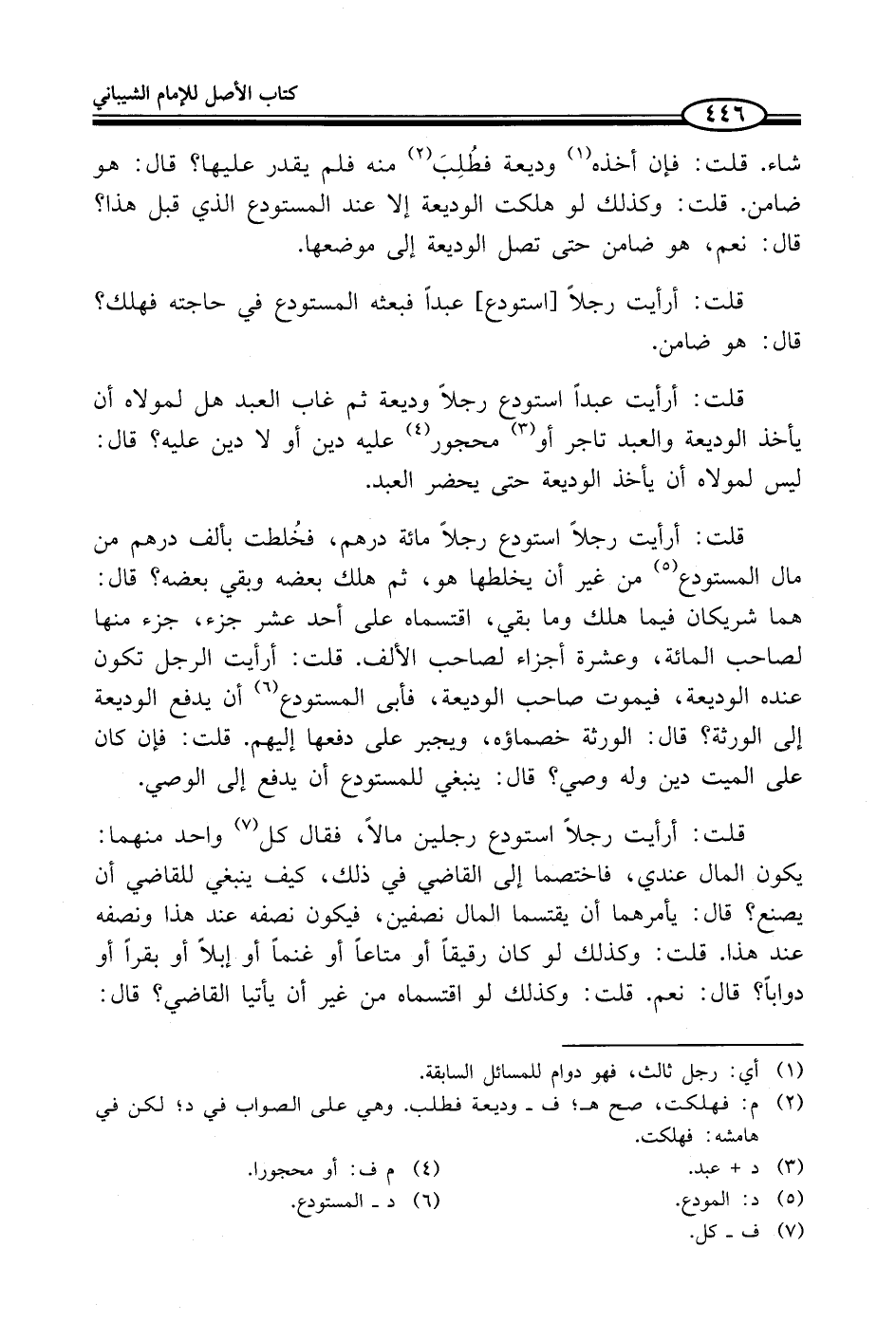 (¬2) م: فهلكت، صح هـ؛ ف - وديعة فطلب. وهي على الصواب في د؛ لكن في هامشه: فهلكت.