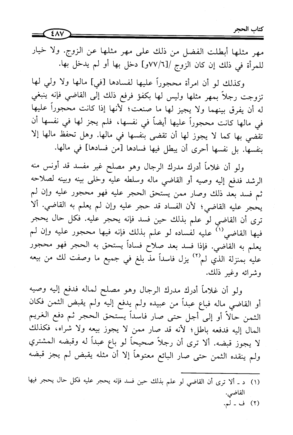 (¬1) د - ألا ترى أن القاضي لو علم بذلك حين فسد فإنه يحجر عليه فكل حال يحجر فيها القاضي.