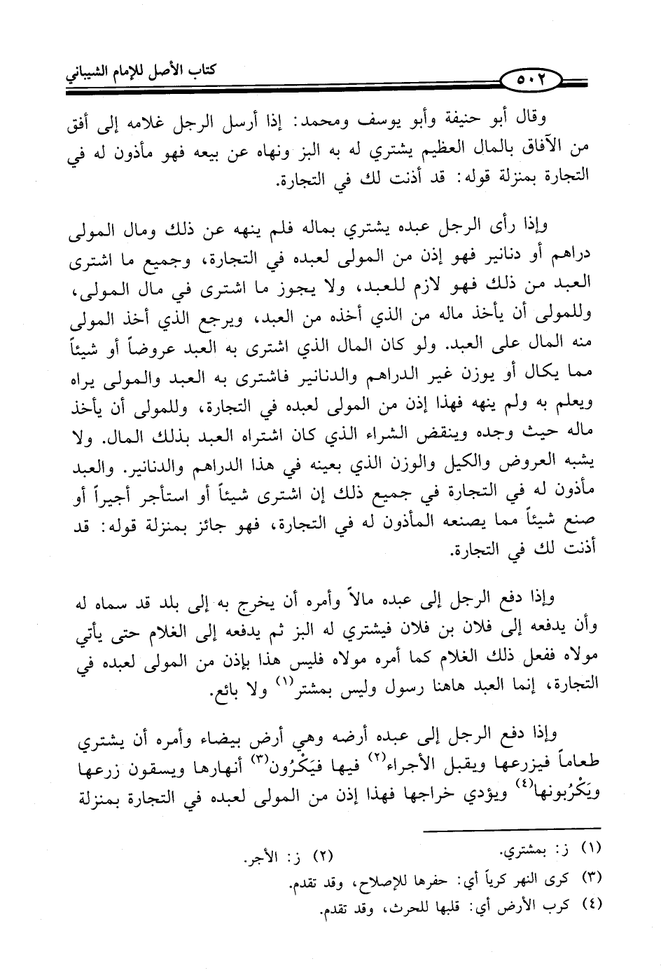 وإذا دفع الرجل إلى عبده أرضه وهي أرض بيضاء وأمره أن يشتري طعاماً فيزرعها ويقبل الأجراء (¬2) فيها فيَكْرُون (¬3) أنهارها ويسقون زرعها ويَكْرُبونها (¬4) ويؤدي خراجها فهذا إذن من المولى لعبده في التجارة بمنزلة
