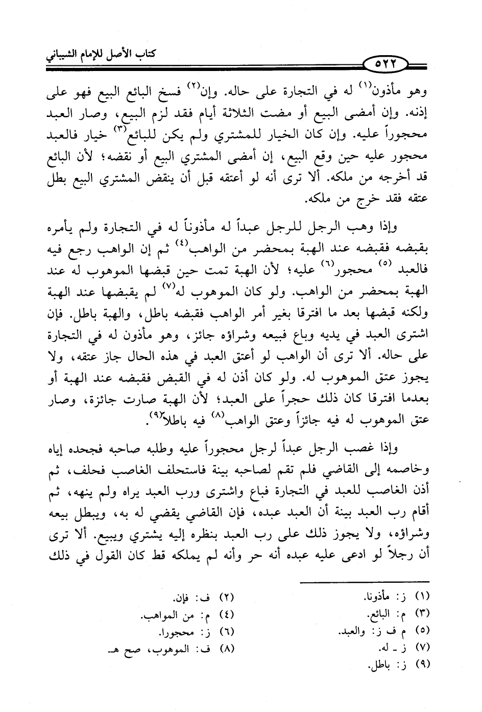 وإذا وهب الرجل للرجل عبداً له مأذوناً له في التجارة ولم يأمره بقبضه فقبضه عند الهبة بمحضر من الواهب (¬4) ثم إن الواهب رجع فيه فالعبد (¬5) محجور (¬6) عليه؛ لأن الهبة تمت حين قبضها الموهوب له عند الهبة بمحضر من الواهب. ولو كان الموهوب له (¬7) لم يقبضها عند الهبة ولكنه قبضها بعد ما افترقا بغير أمر الواهب فقبضه باطل، والهبة باطل. فإن اشترى العبد في يديه وباع فبيعه وشراؤه جائز، وهو مأذون له في التجارة على حاله. ألا ترى أن الواهب لو أعتق العبد في هذه الحال جاز عتقه، ولا يجوز عتق الموهوب له. ولو كان أذن له في القبض فقبضه عند الهبة أو بعدما افترقا كان ذلك حجراً على العبد؛ لأن الهبة صارت جائزة، وصار عتق الموهوب له فيه جائزاً وعتق الواهب (¬8) فيه باطلاً (¬9).