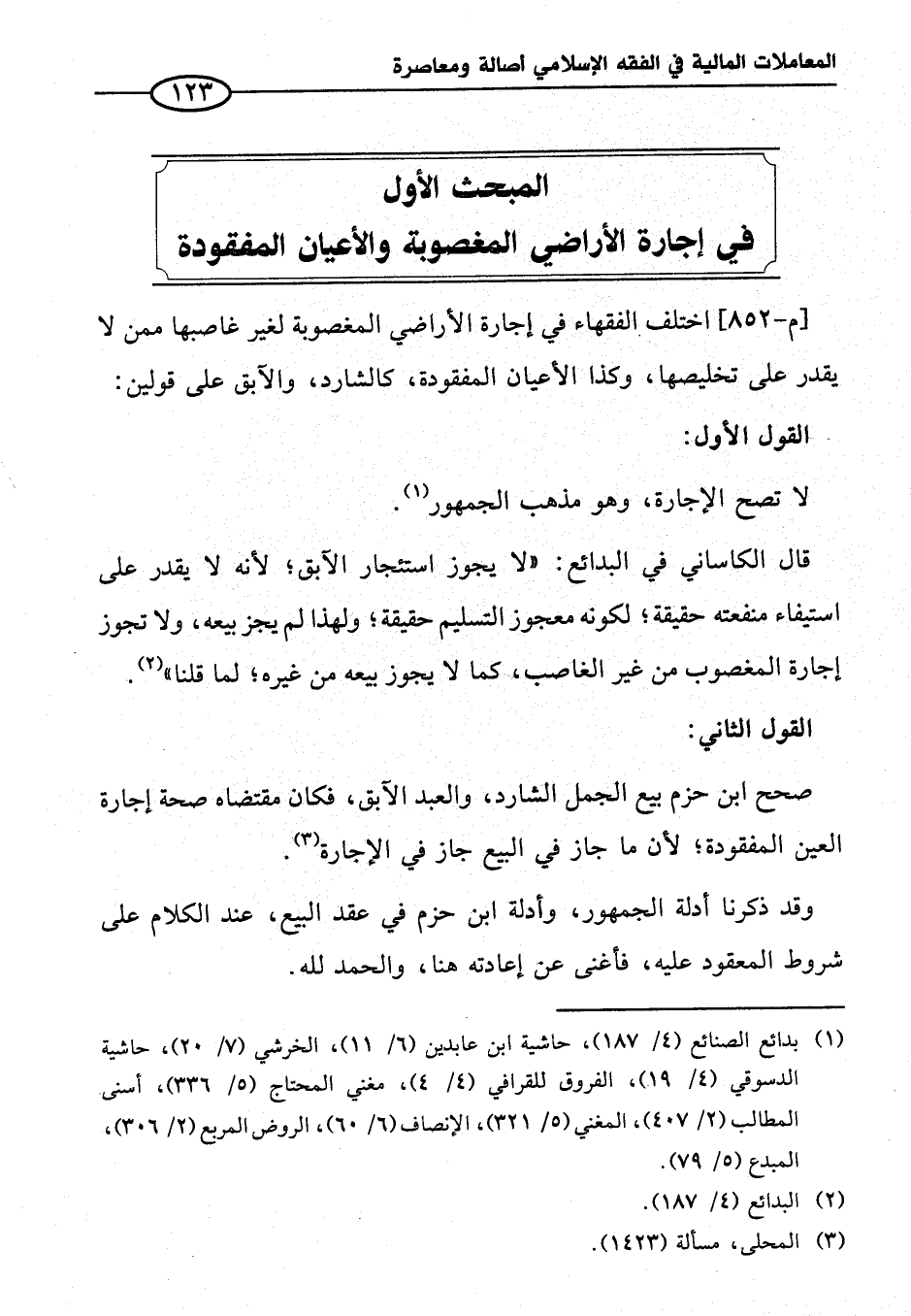 المبحث الأول في إجارة الأراضي المغصوبة والأعيان المفقودة