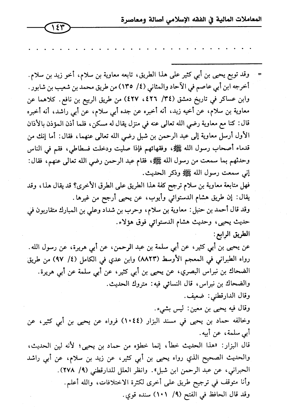فهل متابعة معاوية بن سلام ترجح كفة هذا الطريق على الطرق الأخرى؟ قد يقال هذا، وقد يقال: إن طريق هشام الدستوائي وأيوب، عن يحيى أرجح من غيرها.