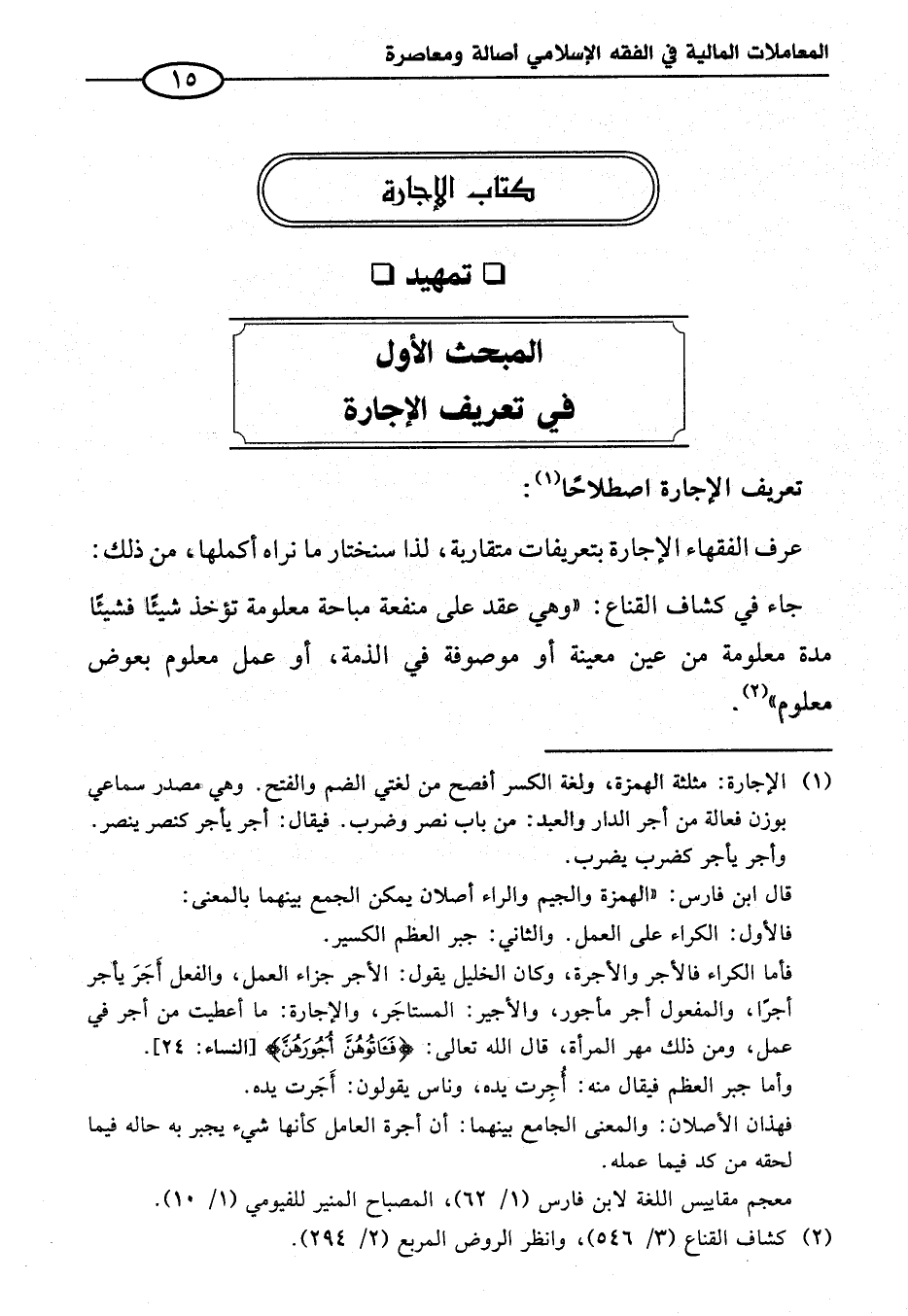 المبحث الأول في تعريف الإجارة