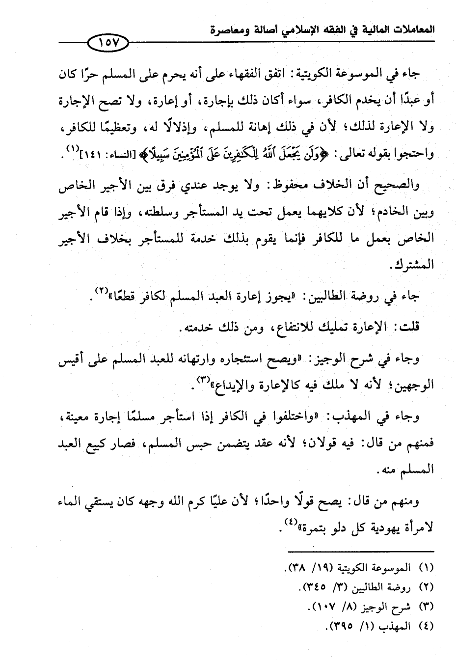 وجاء في المهذب: "واختلفوا في الكافر إذا استأجر مسلمًا إجارة معينة، فمنهم من قال: فيه قولان؛ لأنه عقد يتضمن حبس المسلم، فصار كبيع العبد المسلم منه.
