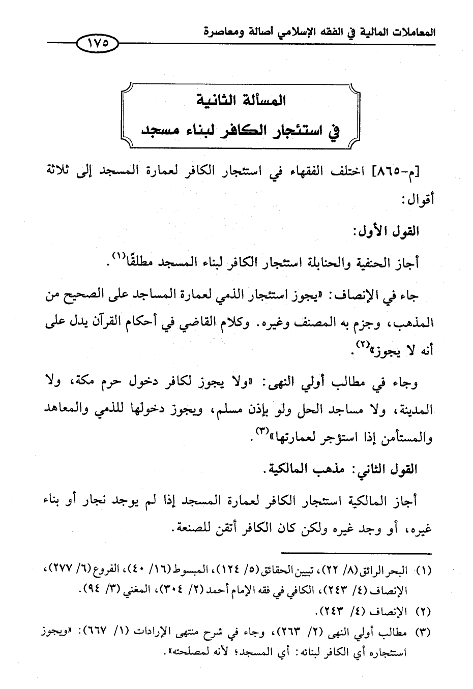 المسألة الثانية في استئجار الكافر لبناء مسجد