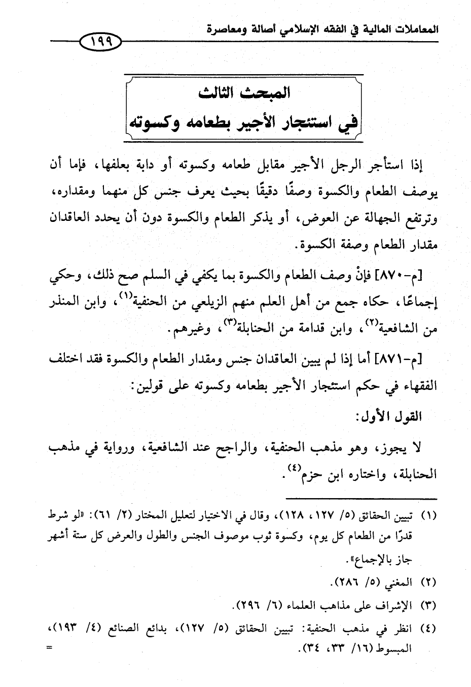 المبحث الثالث في استئجار الأجير بطعامه وكسوته