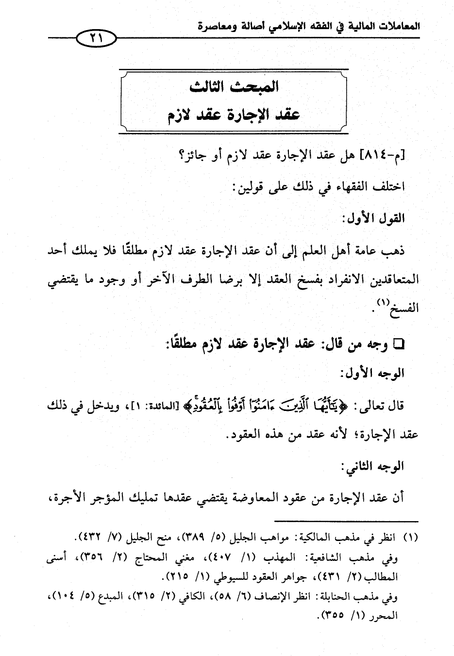 [م - ٨١٤] هل عقد الإجارة عقد لازم أو جائز؟