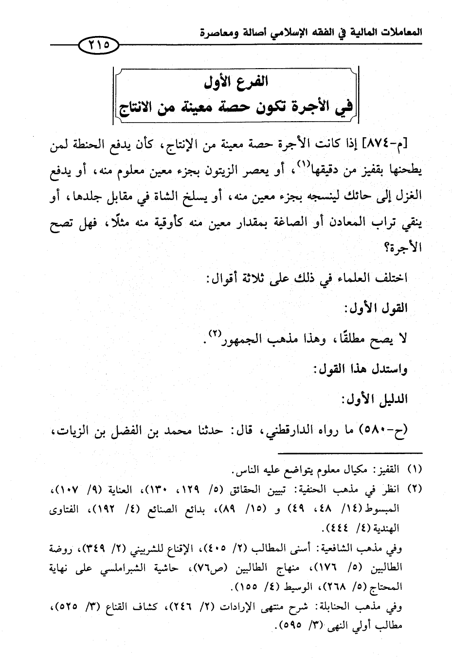 الفرع الأول في الأجرة تكون حصة معينة من الإنتاج