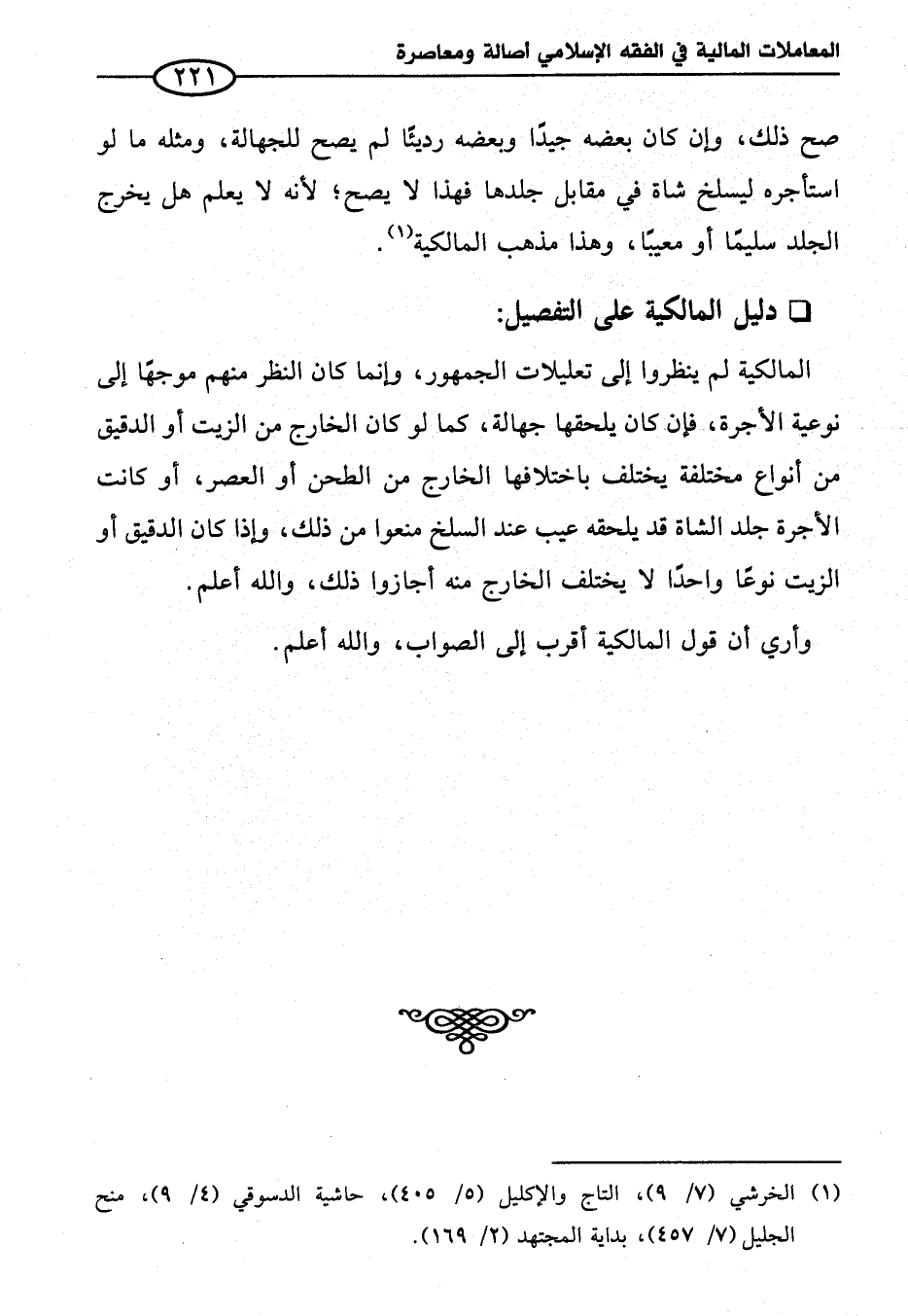 المالكية لم ينظروا إلى تعليلات الجمهور، وإنما كان النظر منهم موجهًا إلى نوعية الأجرة، فإن كان يلحقها جهالة، كما لو كان الخارج من الزيت أو الدقيق من أنواع مختلفة يختلف باختلافها الخارج من الطحن أو العصر، أو كانت الأجرة جلد الشاة قد يلحقه عيب عند السلخ منعوا من ذلك، وإذا كان الدقيق أو الزيت نوعًا واحدًا لا يختلف الخارج منه أجازوا ذلك، والله أعلم.