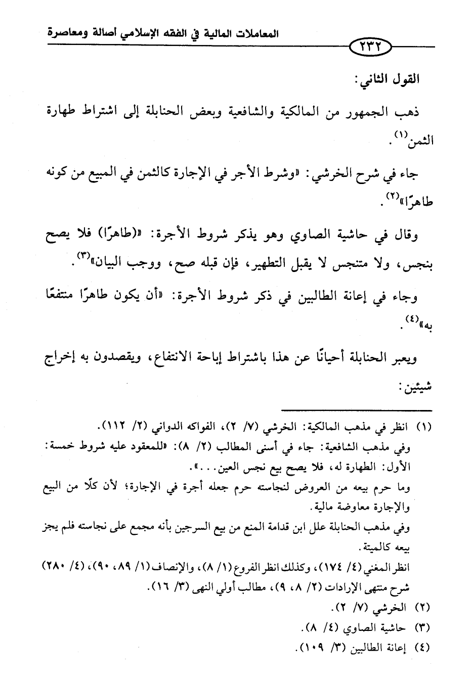 وجاء في إعانة الطالبين في ذكر شروط الأجرة: " أن يكون طاهرًا منتفعًا به" (¬٤)