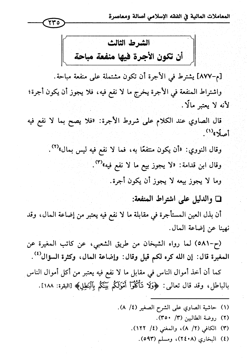 الشرط الثالث أن تكون الأجرة فيها منفعة مباحة