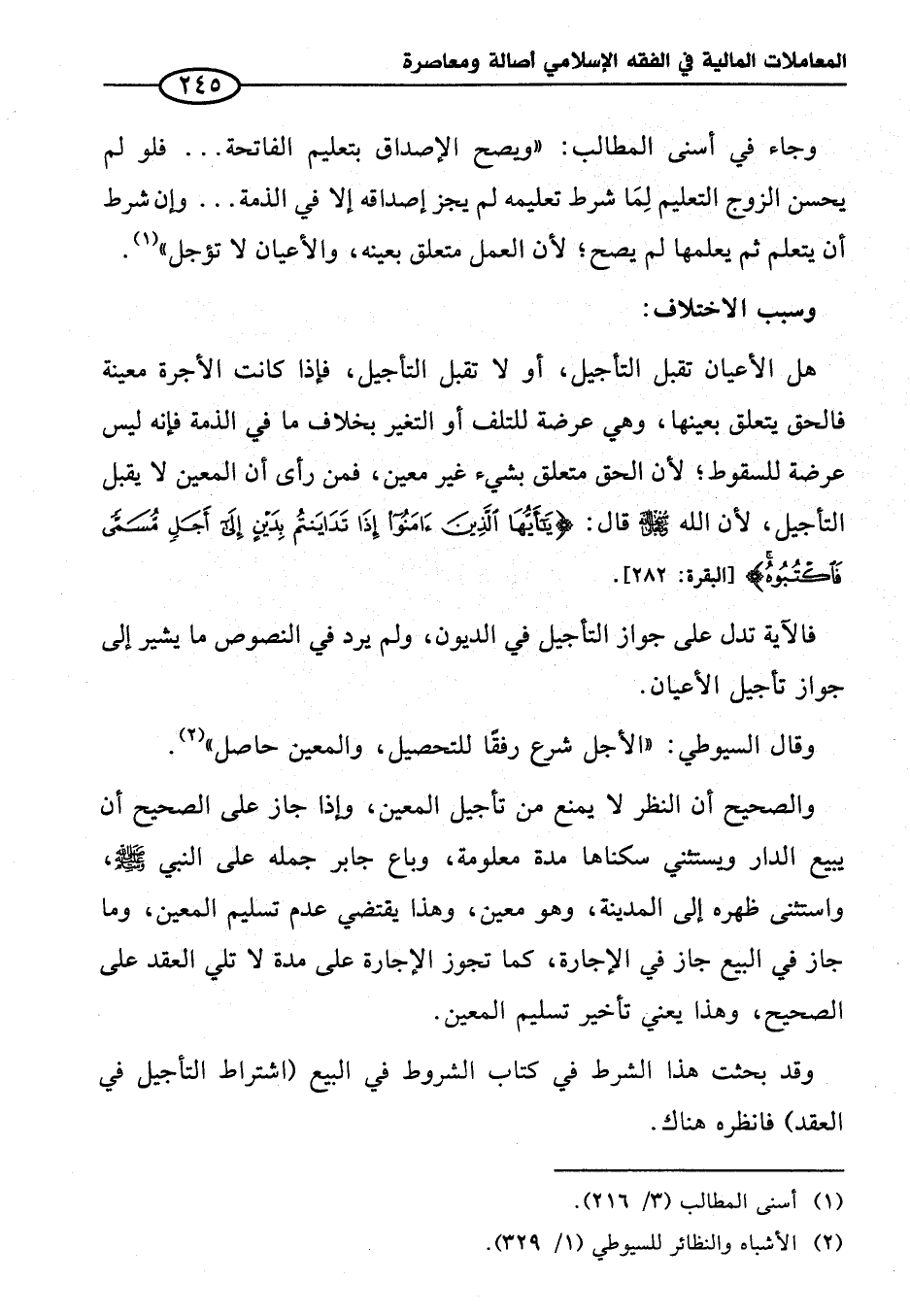 فالآية تدل على جواز التأجيل في الديون، ولم يرد في النصوص ما يشير إلى جواز تأجيل الأعيان.