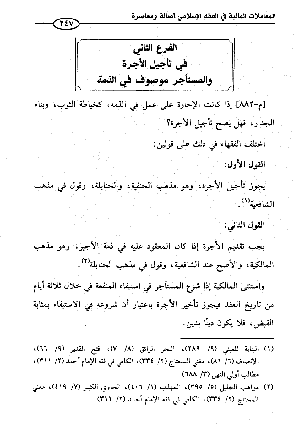 الفرع الثاني في تأجيل الأجرة والمستأجر موصوف في الذمة