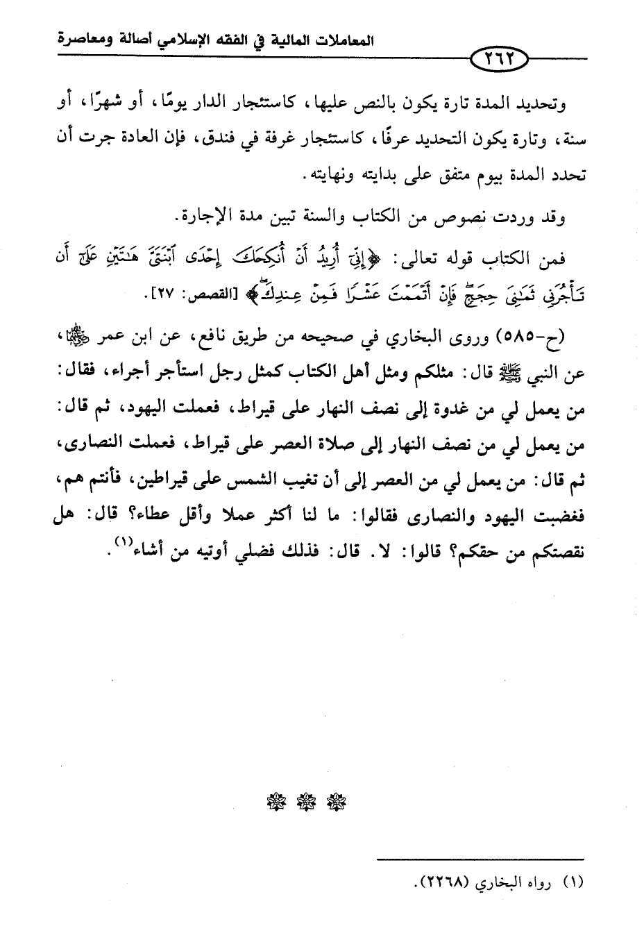(ح-٥٨٥) وروى البخاري في صحيحه من طريق نافع، عن ابن عمر - رضي الله عنه - عن النبي -صلى الله عليه وسلم- قال: مثلكم ومثل أهل الكتاب كمثل رجل استأجر أجراء، فقال: من يعمل لي من غدوة إلى نصف النهار على قيراط، فعملت اليهود، ثم قال: من يعمل لي من نصف النهار إلى صلاة العصر على قيراط، فعملت النصارى، ثم قال: من يعمل لي من العصر إلى أن تغيب الشمس على قيراطين، فأنتم هم، فغضبت اليهود والنصارى فقالوا: ما لنا أكثر عملا وأقل عطاء؟ قال: هل نقصتكم من حقكم؟ قالوا: لا. قال: فذلك فضلي أوتيه من أشاء (¬١).