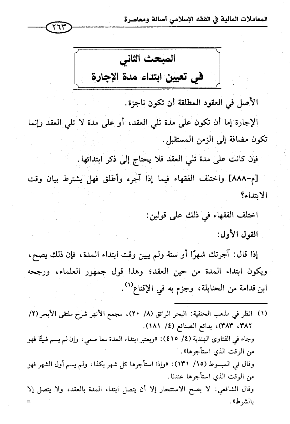 المبحث الثاني في تعيين ابتداء مدة الإجارة