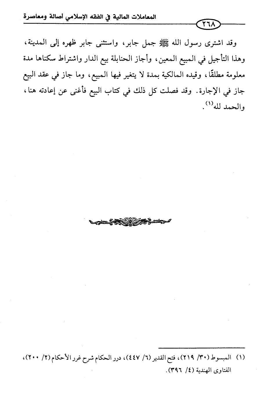 وقد اشترى رسول الله -صلى الله عليه وسلم- جمل جابر، واستثنى جابر ظهره إلى المدينة، وهذا التأجيل في المبيع المعين، وأجاز الحنابلة بيع الدار واشتراط سكناها مدة معلومة مطلقًا، وقيده المالكية بمدة لا يتغير فيها المبيع، وما جاز في عقد البيع جاز في الإجارة. وقد فصلت كل ذلك في كتاب البيع فأغنى عن إعادته هنا، والحمد لله (¬١).
