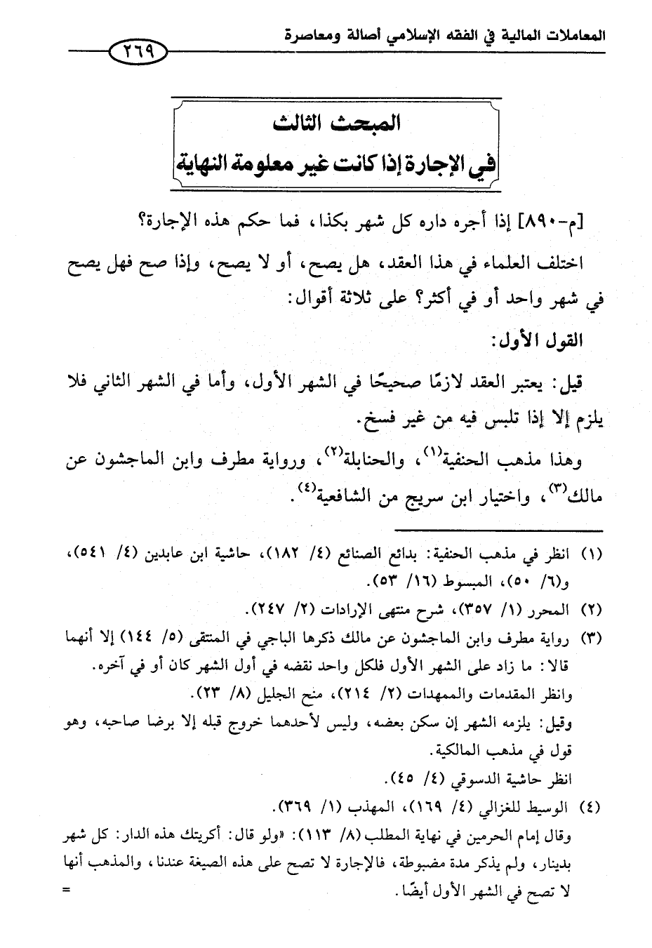 المبحث الثالث في الإجارة إذا كانت غير معلومة النهاية