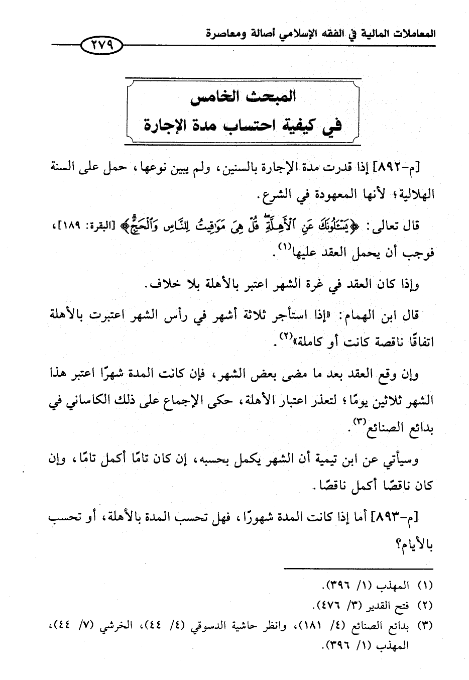 المبحث الخامس في كيفية احتساب مدة الإجارة