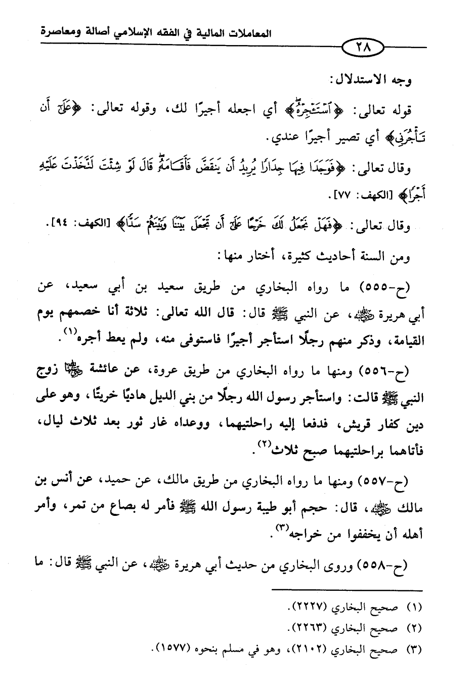 (ح-٥٥٥) ما رواه البخاري من طريق سعيد بن أبي سعيد، عن أبي هريرة - رضي الله عنه -، عن النبي -صلى الله عليه وسلم- قال: قال الله تعالى: ثلاثة أنا خصمهم يوم القيامة، وذكر منهم رجلًا استأجر أجيرًا فاستوفى منه، ولم يعط أجره (¬١).