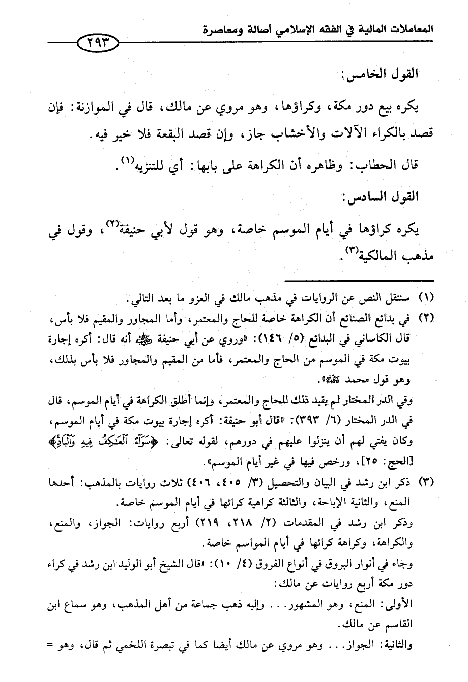 وجاء في أنوار البروق في أنواع الفروق (٤/ ١٠): "قال الشيخ أبو الوليد ابن رشد في كراء دور مكة أربع روايات عن مالك: