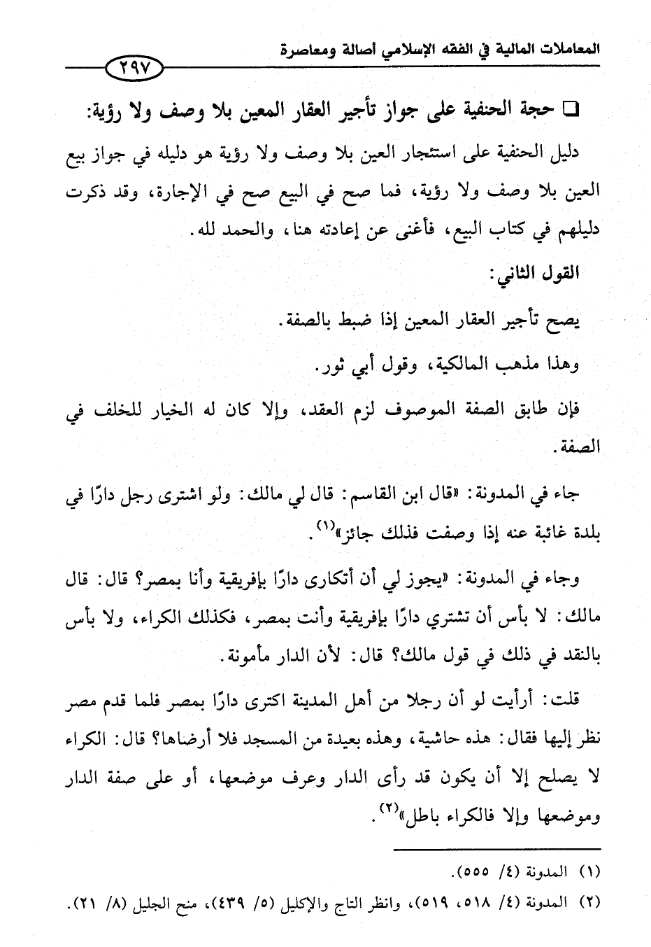 (¬٢) المدونة (٤/ ٥١٨، ٥١٩)، وانظر التاج والإكليل (٥/ ٤٣٩)، منح الجليل (٨/ ٢١).