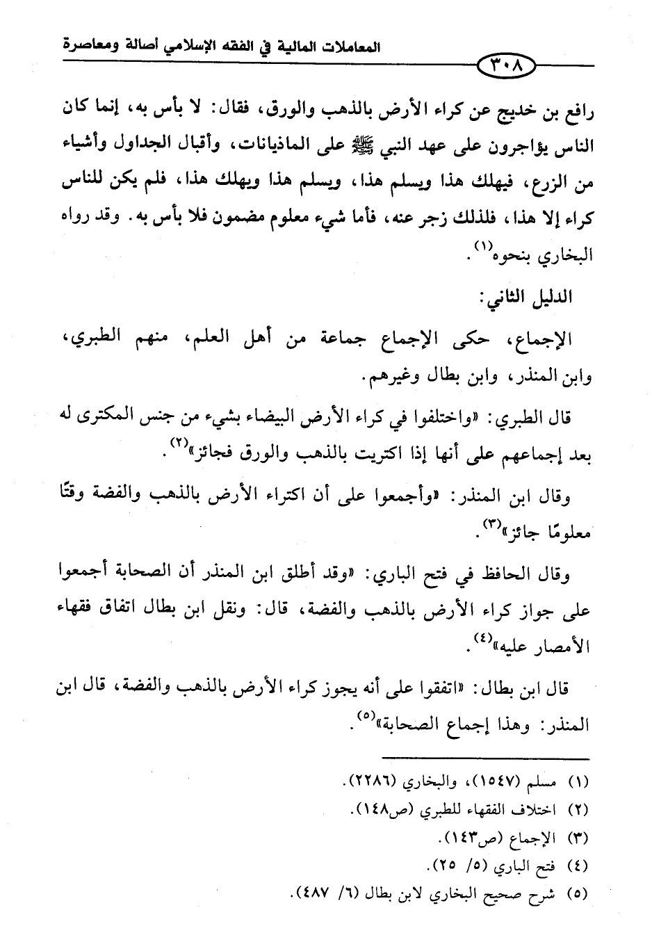 قال ابن بطال: "اتفقوا على أنه يجوز كراء الأرض بالذهب والفضة، قال ابن المنذر: وهذا إجماع الصحابة" (¬٥).