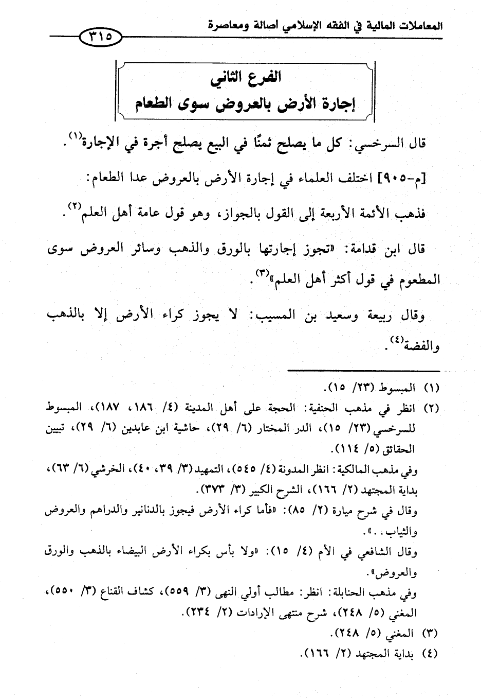الفرع الثاني إجارة الأرض بالعروض سوى الطعام