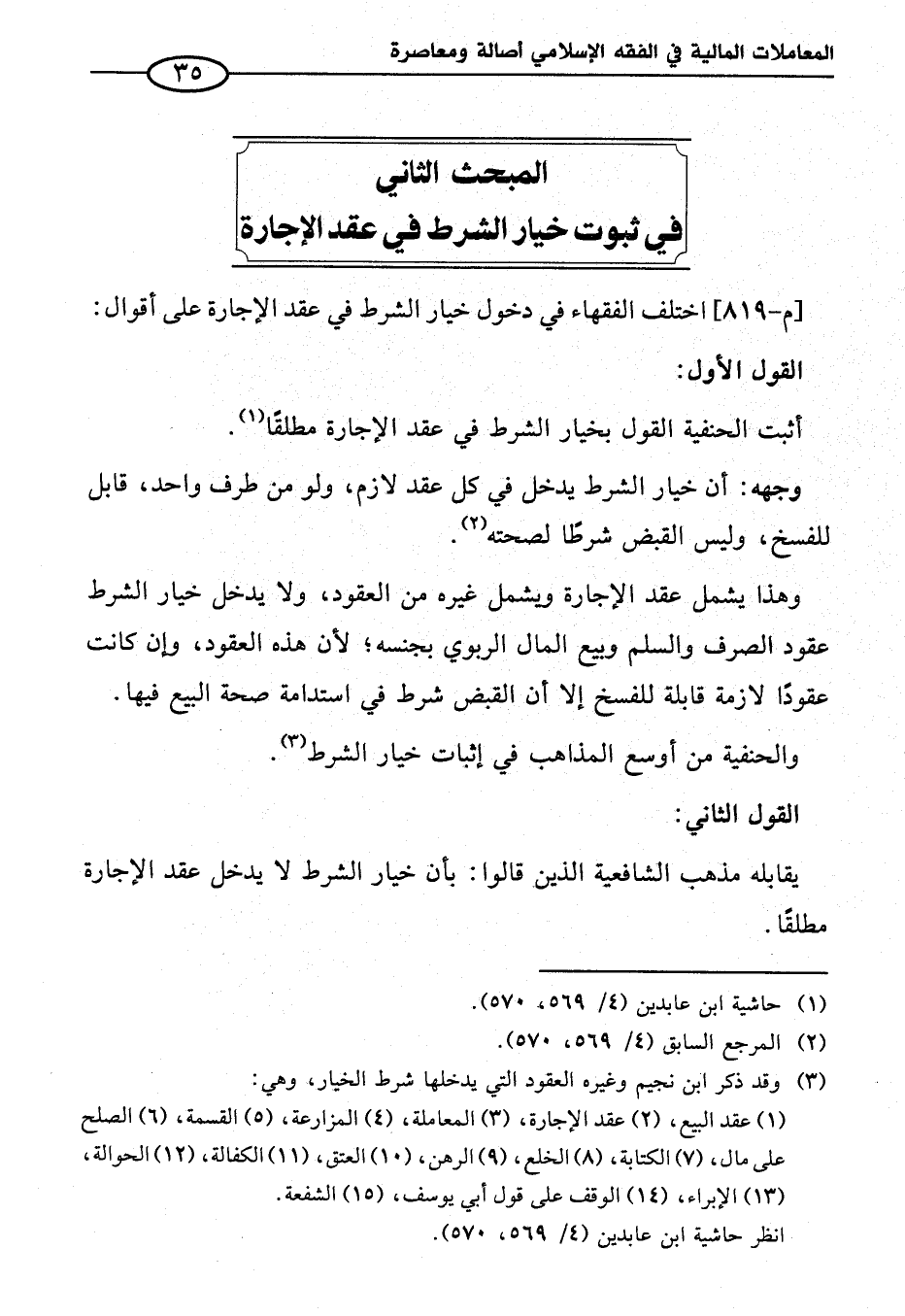 المبحث الثاني في ثبوت خيار الشرط في عقد الإجارة