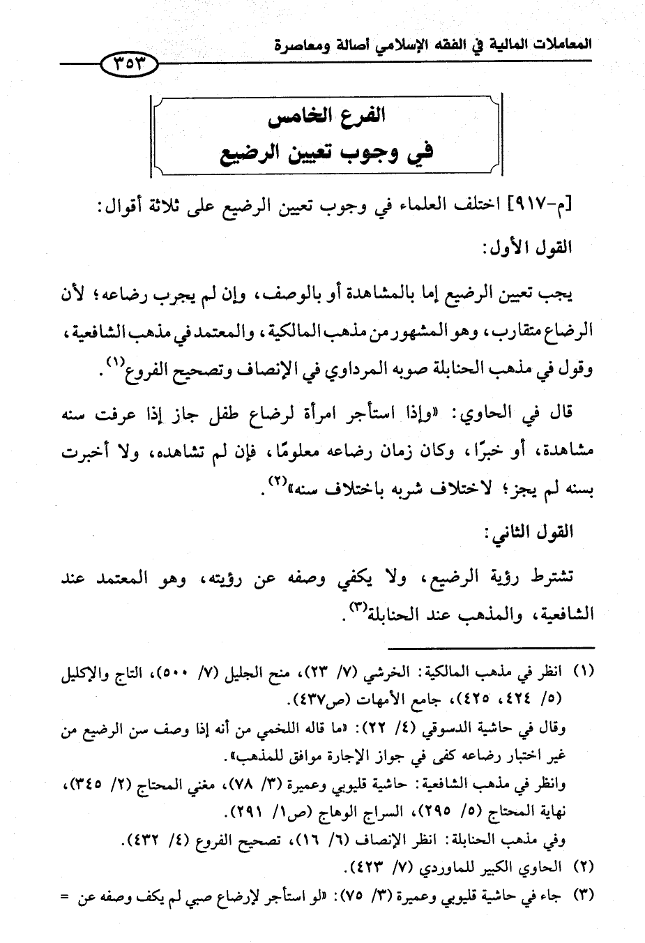 [م - ٩١٧] اختلف العلماء في وجوب تعيين الرضيع على ثلاثة أقوال: