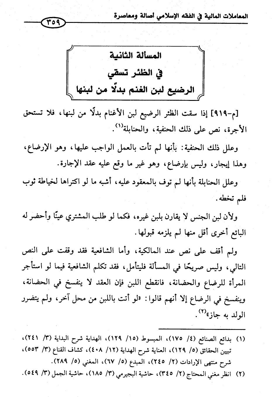 المسألة الثانية في الظئر تسقي الرضيع لبن الغنم بدلاً من لبنها