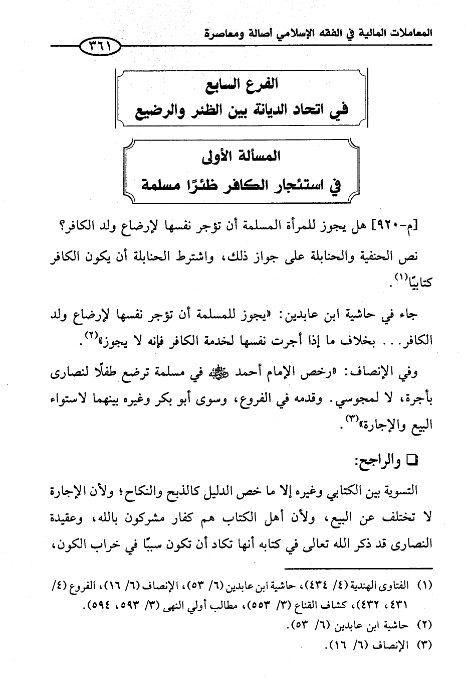 وفي الإنصاف: "رخص الإمام أحمد - رضي الله عنه - في مسلمة ترضع طفلاً لنصارى بأجرة، لا لمجوسي. وقدمه في الفروع، وسوى أبو بكر وغيره بينهما لاستواء البيع والإجارة" (¬٣).