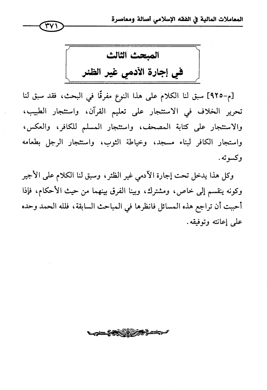 [م - ٩٢٥] سبق لنا الكلام على هذا النوع مفرقًا في البحث، فقد سبق لنا تحرير الخلاف في الاستئجار على تعليم القرآن، واستئجار الطبيب، والاستئجار على كتابة المصحف، واستئجار المسلم للكافر، والعكس، واستجار الكافر لبناء مسجد، وخياطة الثوب، واستئجار الرجل بطعامه وكسوته.