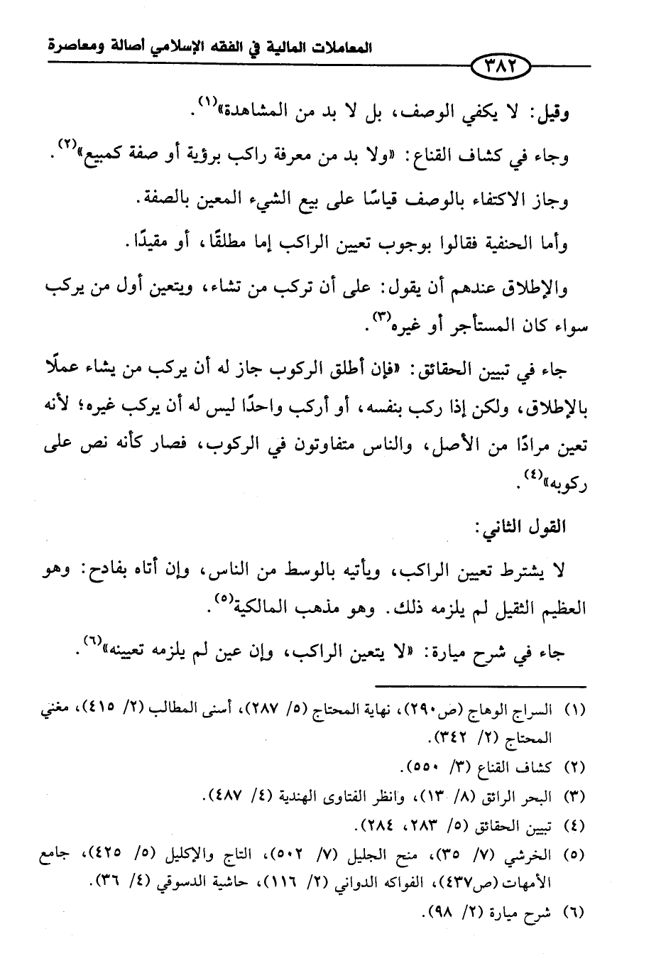 وجاء في كشاف القناع: "ولا بد من معرفة راكب برؤية أو صفة كمبيع" (¬٢).