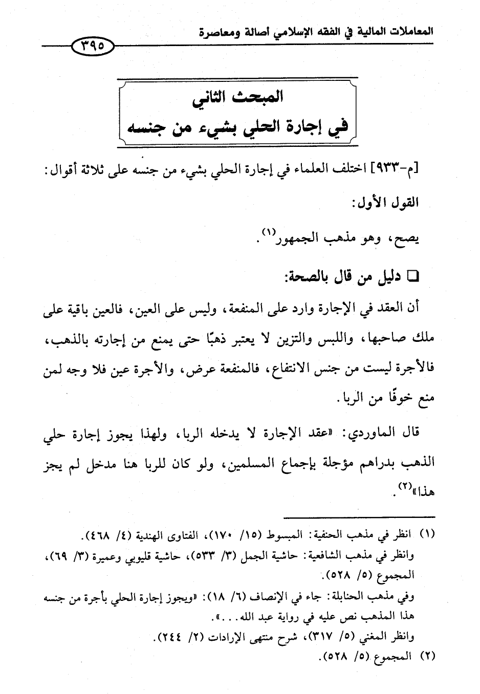 المبحث الثاني في إجارة الحلي بشيء من جنسه