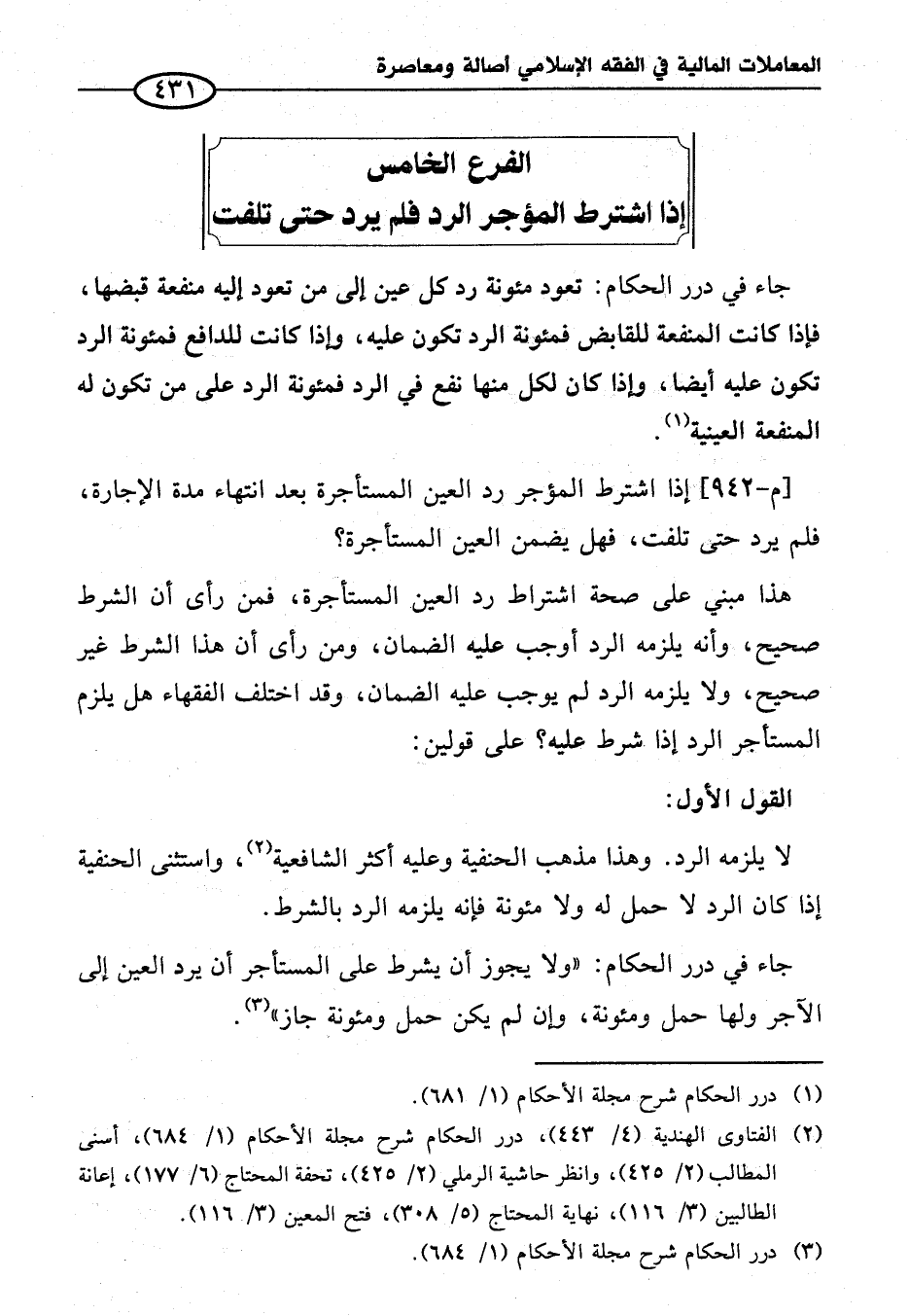 (¬٣) درر الحكام شرح مجلة الأحكام (١/ ٦٨٤).