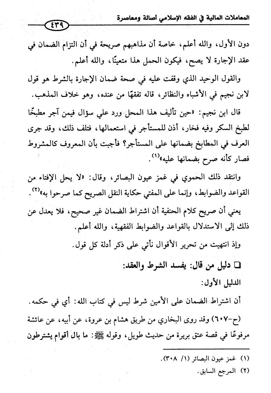 يعني أن صريح كلام الحنفية أن اشتراط الضمان غير صحيح، فلا يعدل عن ذلك إلى الاستدلال بالقواعد والضوابط الفقهية، والله أعلم.