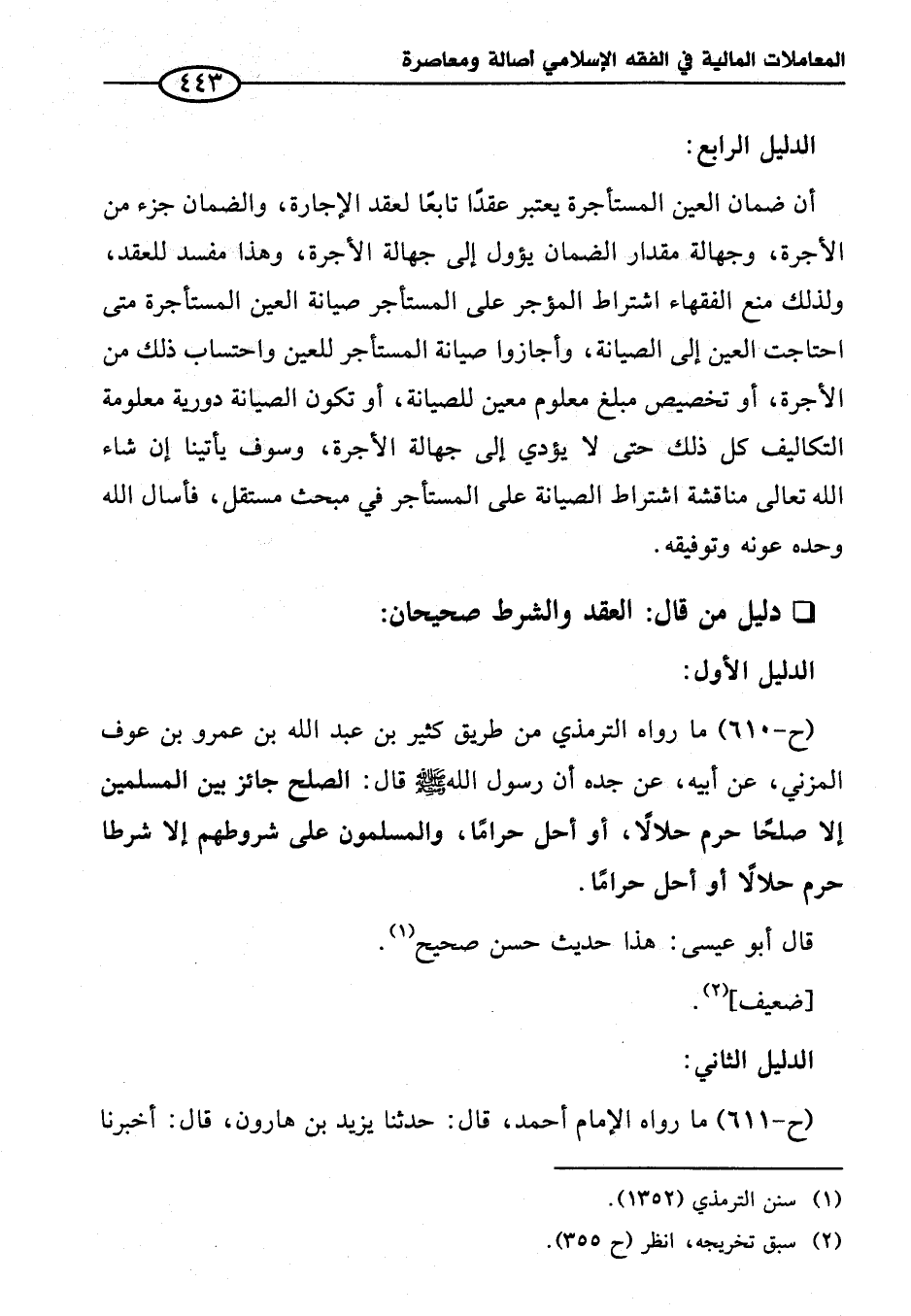 (ح-٦١٠) ما رواه الترمذي من طريق كثير بن عبد الله بن عمرو بن عوف المزني، عن أبيه، عن جده أن رسول - صلى الله عليه وسلم - قال: الصلح جائز بين المسلمين إلا صلحًا حرم حلالًا، أو أحل حرامًا، والمسلمون على شروطهم إلا شرطا حرم حلالًا أو أحل حرامًا.