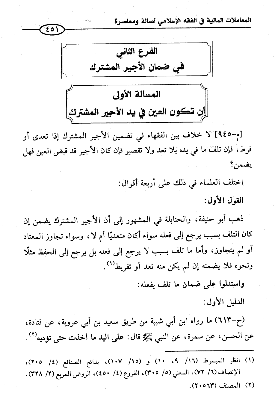 الفرع الثاني في ضمان الأجير المشترك