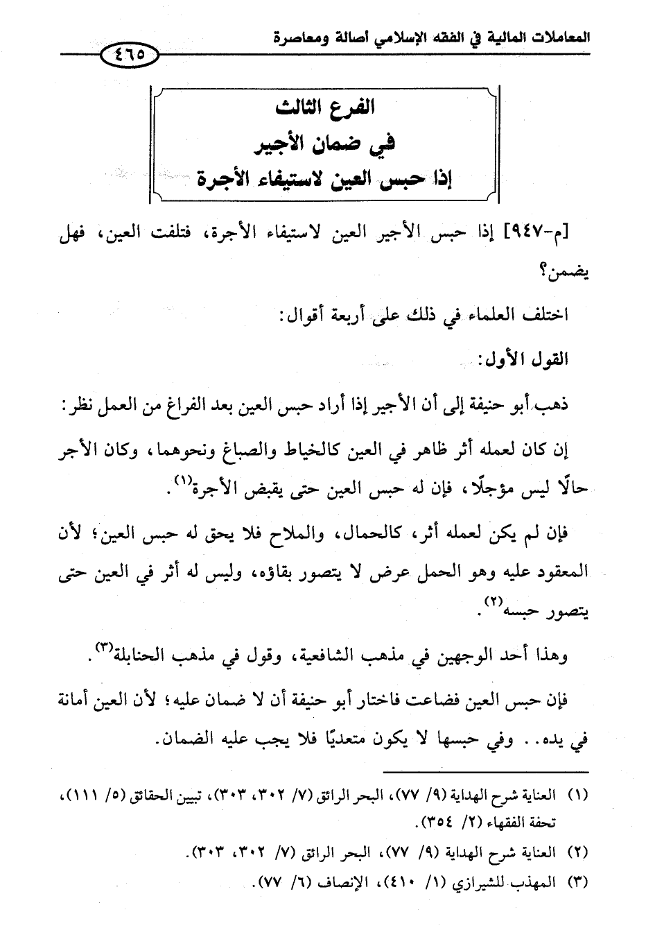 الفرع الثالث في ضمان الأجير إذا حبس العين لاستيفاء الأجرة