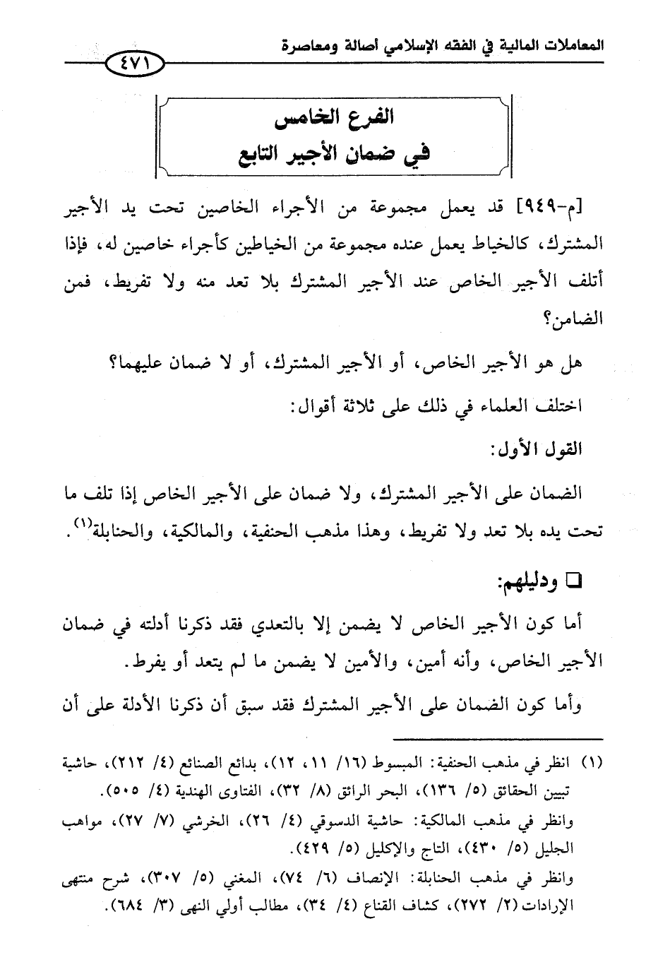 الفرع الخامس في ضمان الأجير التابع