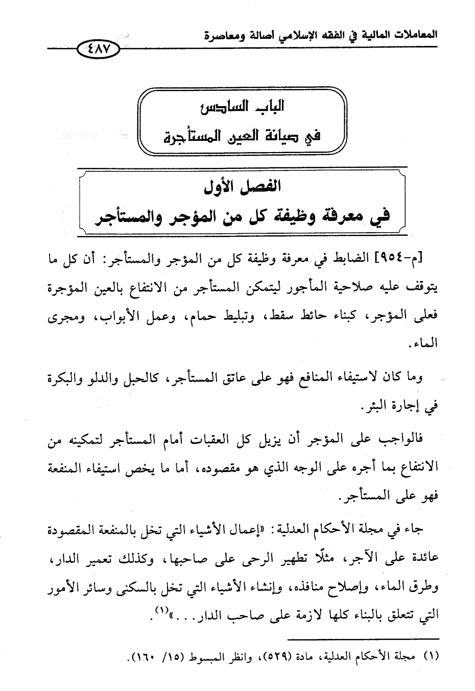 الباب السادس في صيانة العين المستأجرة