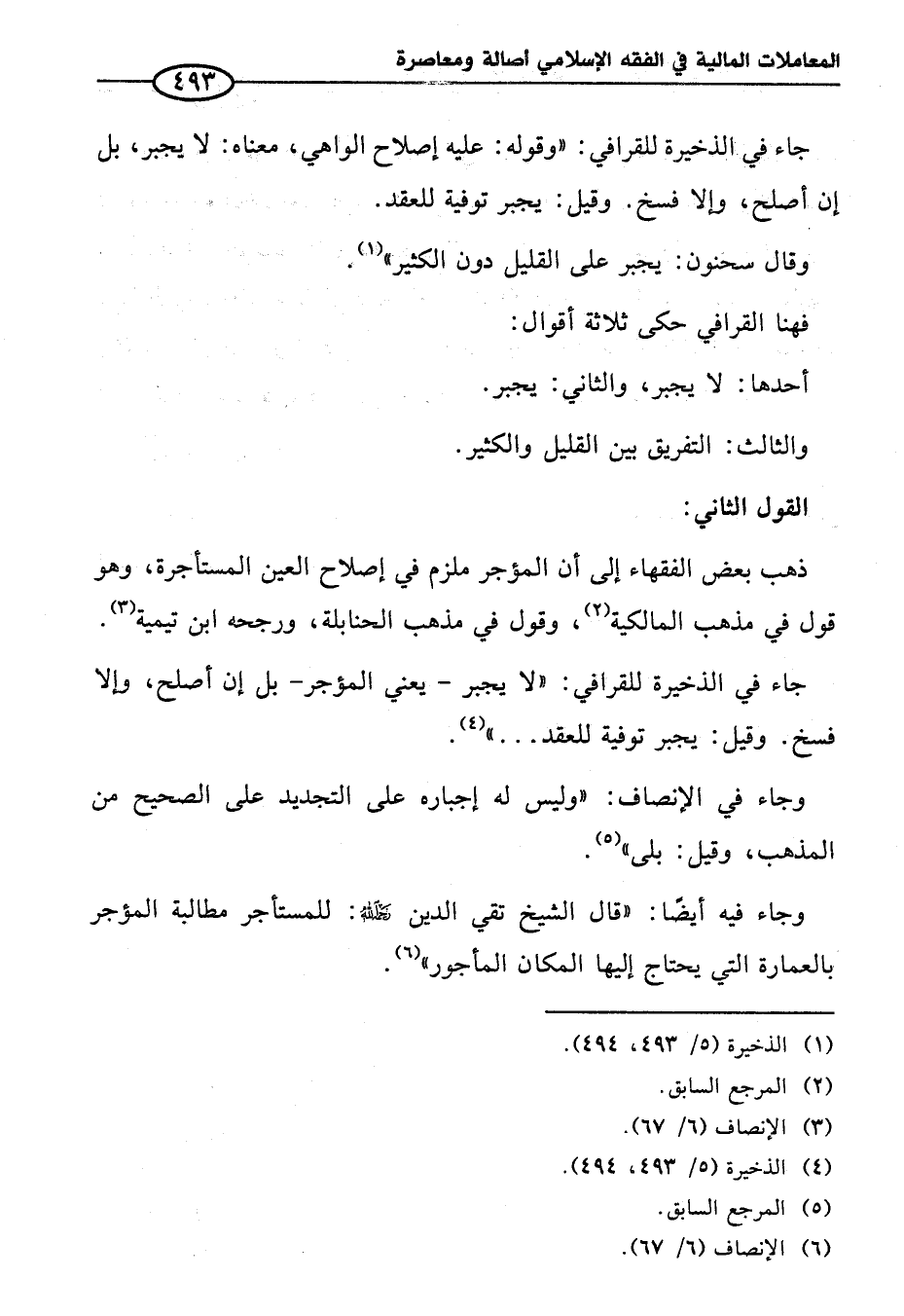 (¬١) الذخير (٥/ ٤٩٣، ٤٩٤).