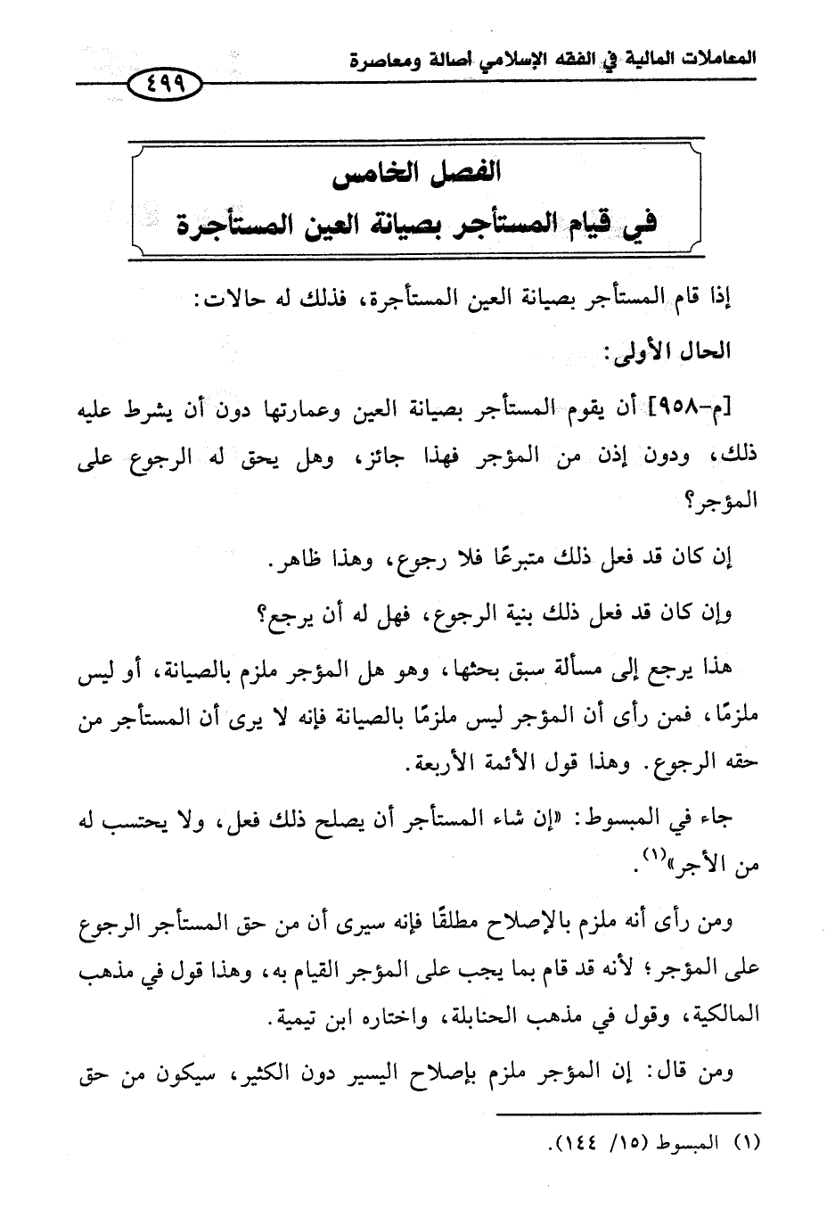 الفصل الخامس في قيام المستأجر بصيانة العين المستأجرة