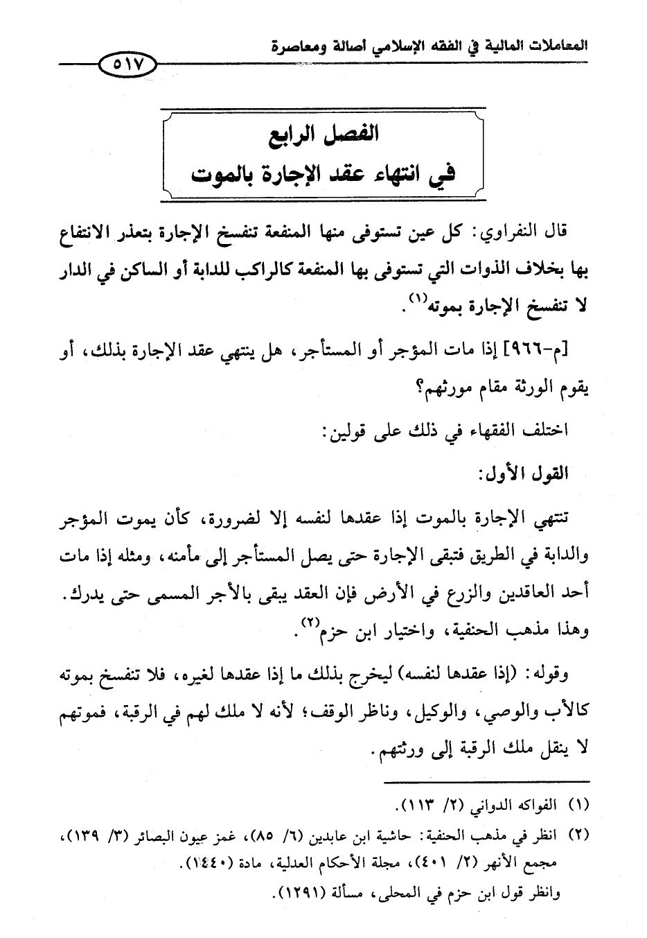 الفصل الرابع في انتهاء عقد الإجارة بالموت