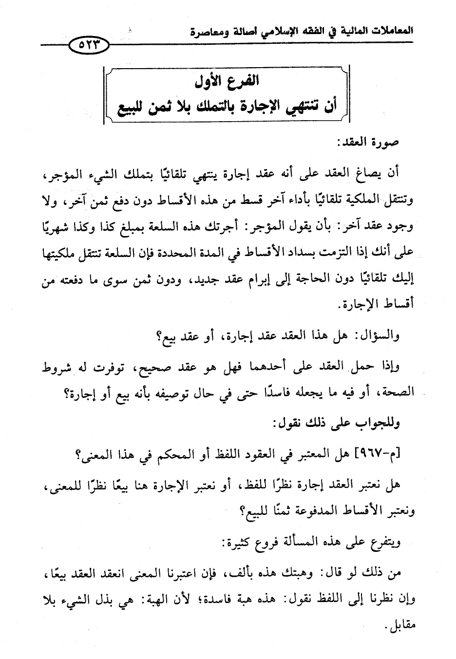 الفرع الأول أن تنتهي الإجارة بالتملك بلا ثمن للبيع
