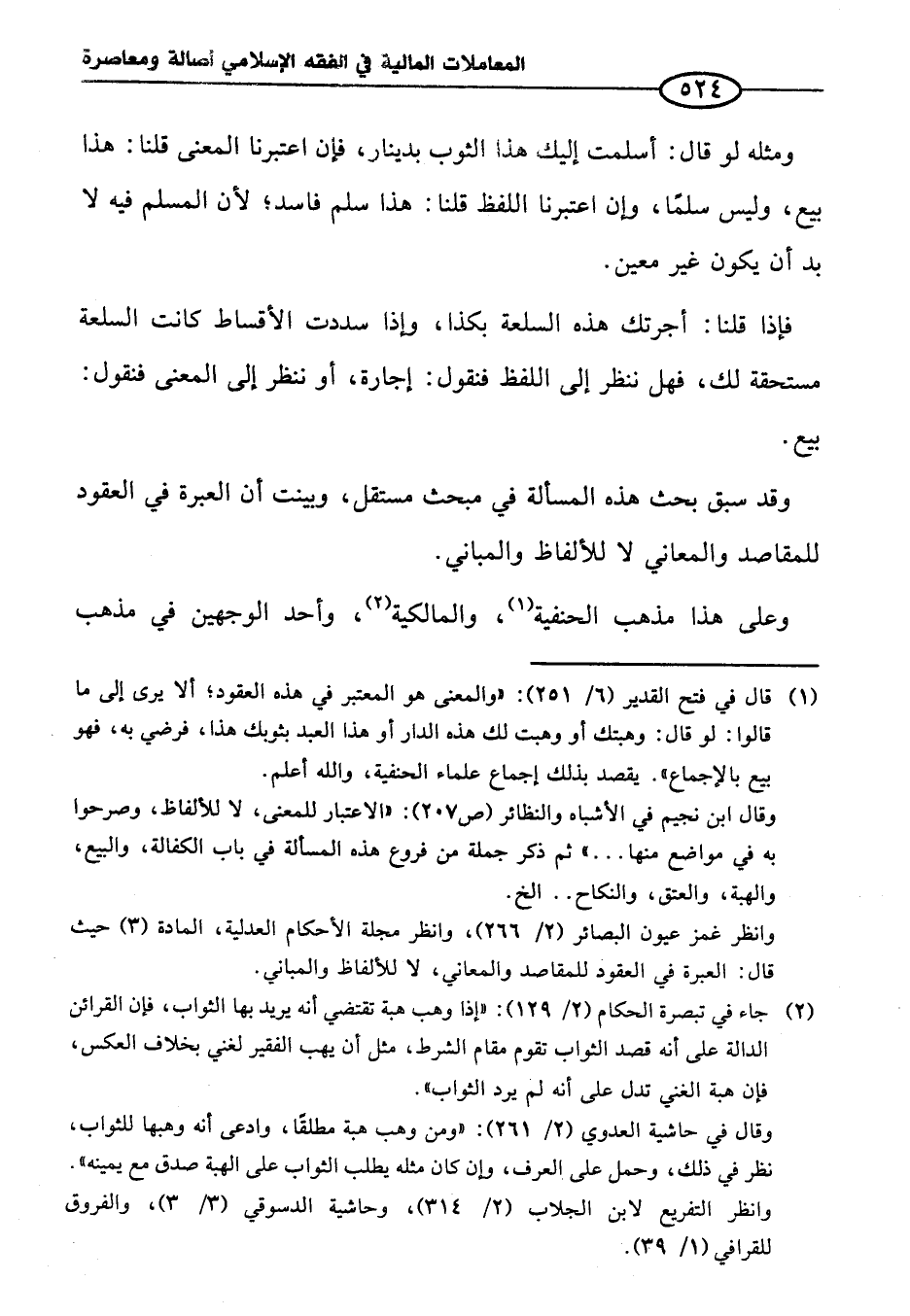 وقد سبق بحث هذه المسألة في مبحث مستقل، وبينت أن العبرة في العقود للمقاصد والمعاني لا للألفاظ والمباني.