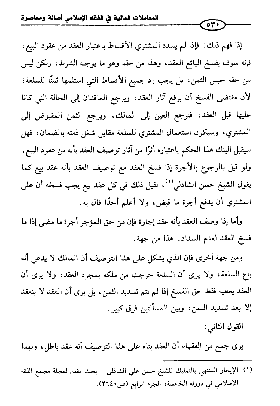 (¬١) الإيجار المنتهي بالتمليك للشيخ حسن علي الشاذلي - بحث مقدم لمجلة مجمع الفقه الإِسلامي في دورته الخامسة، الجزء الرابع (ص ٢٦٤٠).