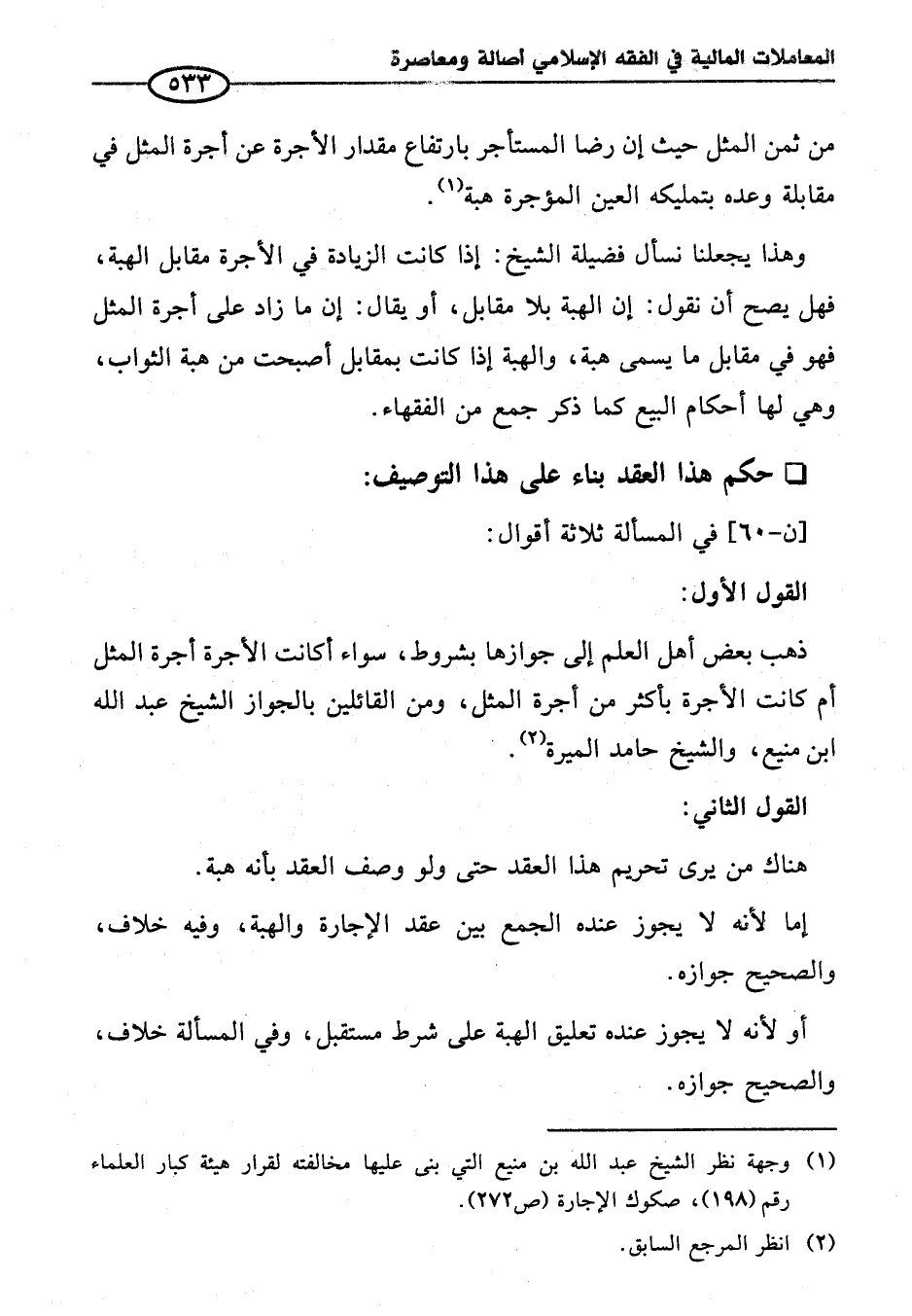 (¬١) وجهة نظر الشيخ عبد الله بن منيع التي بني عليها مخالفته لقرار هيئة كبار العلماء رقم (١٩٨)، صكوك الإجارة (ص ٢٧٢).